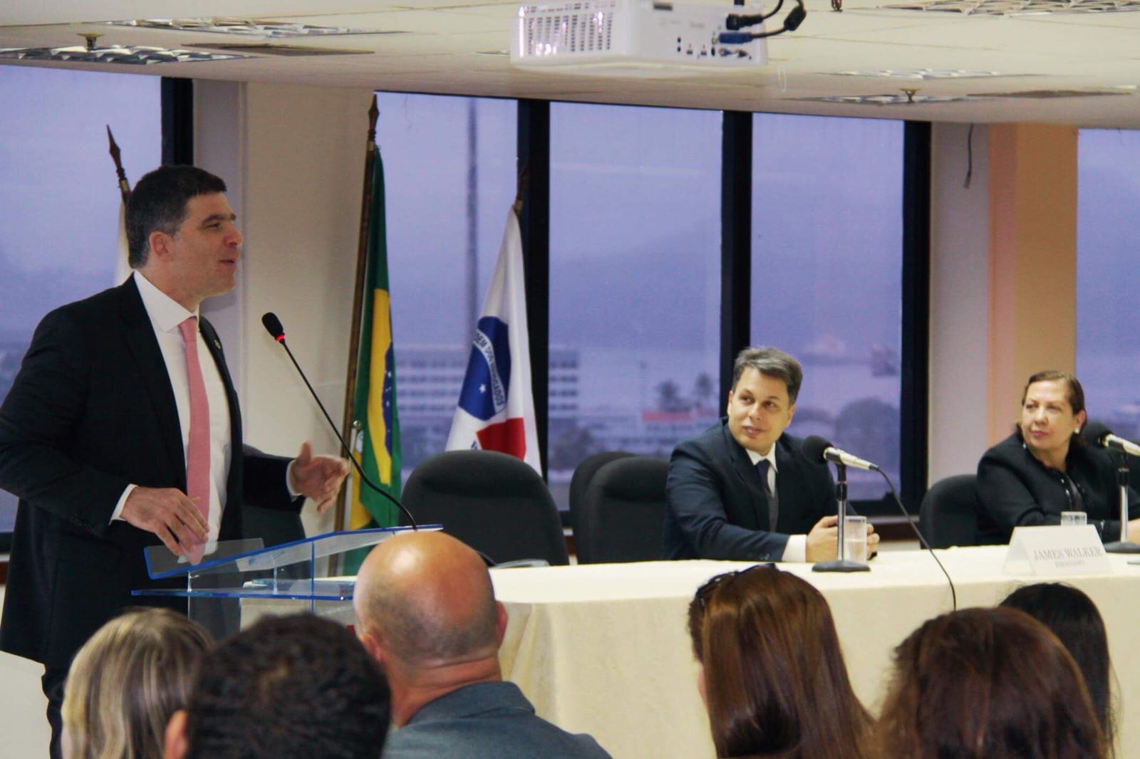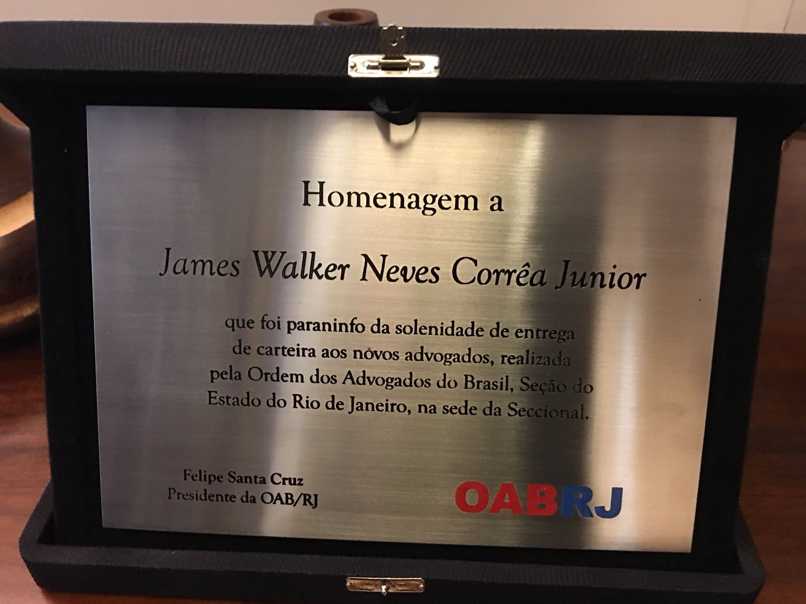 A convite do presidente da Comissão de Prerrogativas da OAB-RJ, Dr. Luciano Bandeira, que presidiu a sessão, e ao lado da Dra. Fátima Henriette, representando a OAB Mulher, o Dr. James Walker fez uma saudação e discursou para os novos advogados e advogadas, diante de um plenário absolutamente lotado.