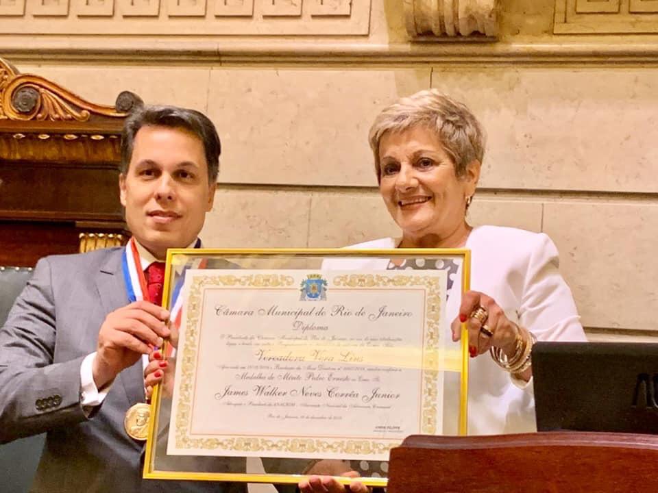 Na noite de ontem (14/05/19), no Palácio Pedro Ernesto, sede da Câmara Municipal do Rio de Janeiro, o presidente nacional da ANACRIM e sócio do escritório Walker Advogados Associados, James Walker Júnior foi homenageado com a entrega do conjunto de Medalhas Pedro Ernesto.