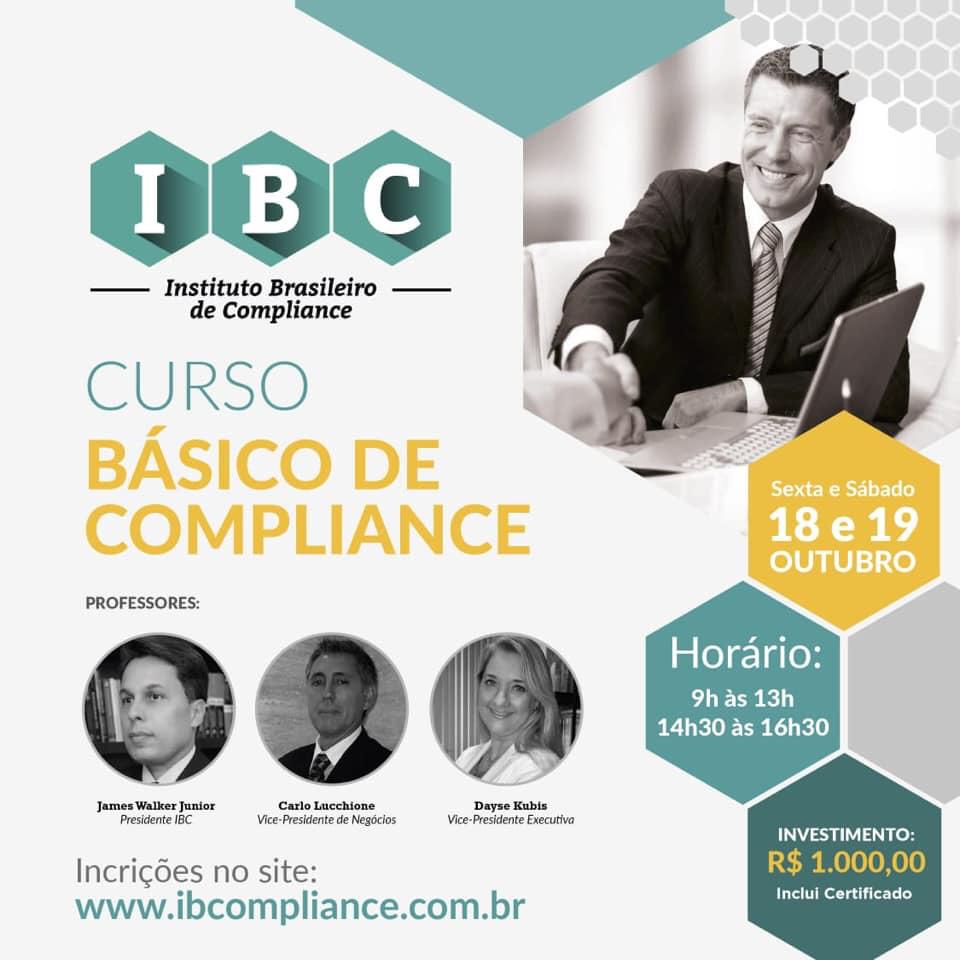 Nos dia 18 e 19 de outubro será realizada mais uma edição do Curso Básico Intensivo de Compliance do IBC - Instituto Brasileiro de Compliance.