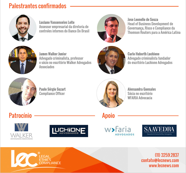 Temas como a Lei 12.846/13 e seu Decreto regulamentador, Medida Provisória 703, FCPA, FATCA, Responsabilidade penal de sócios e gestores de empresas, Operação Lavajato, Lavagem de Capitais, a nova Lei de Repatriação de Recursos (13.254/16), Programas de Compliance, órgãos reguladores, serão abordados nas palestras.