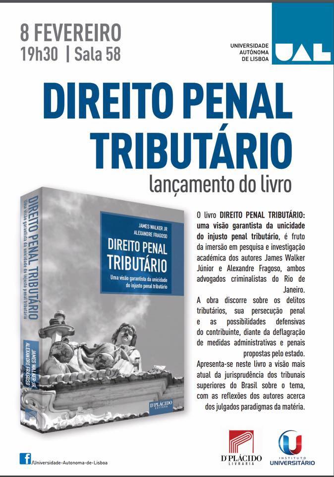 Em noite repleta de amigos foi realizado, com absoluto sucesso, o lançamento, em Portugal, na UAL - Universidade Autônoma de Lisboa, do livro do advogado e professor James Walker Júnior, sócio do escritório WALKER ADVOGADOS ASSOCIADOS e presidente da ABRACRIM-RJ Associação Brasileira dos Advogados Criminalistas.