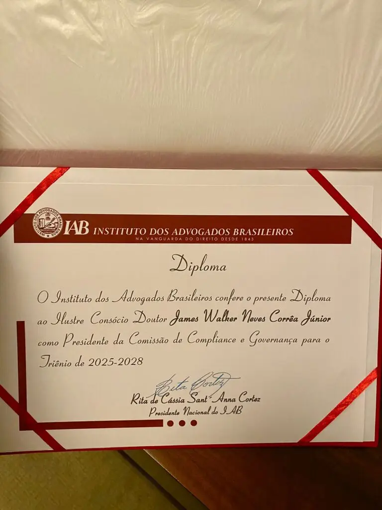 Na tarde desta segunda-feira (19/05/25), o advogado criminalista e professor James Walker Jr, sócio do escritório Walker Advogados Associados tomou posse como presidente da Comissão de Compliance e Governança do IAB – Instituto dos Advogados Brasileiros.